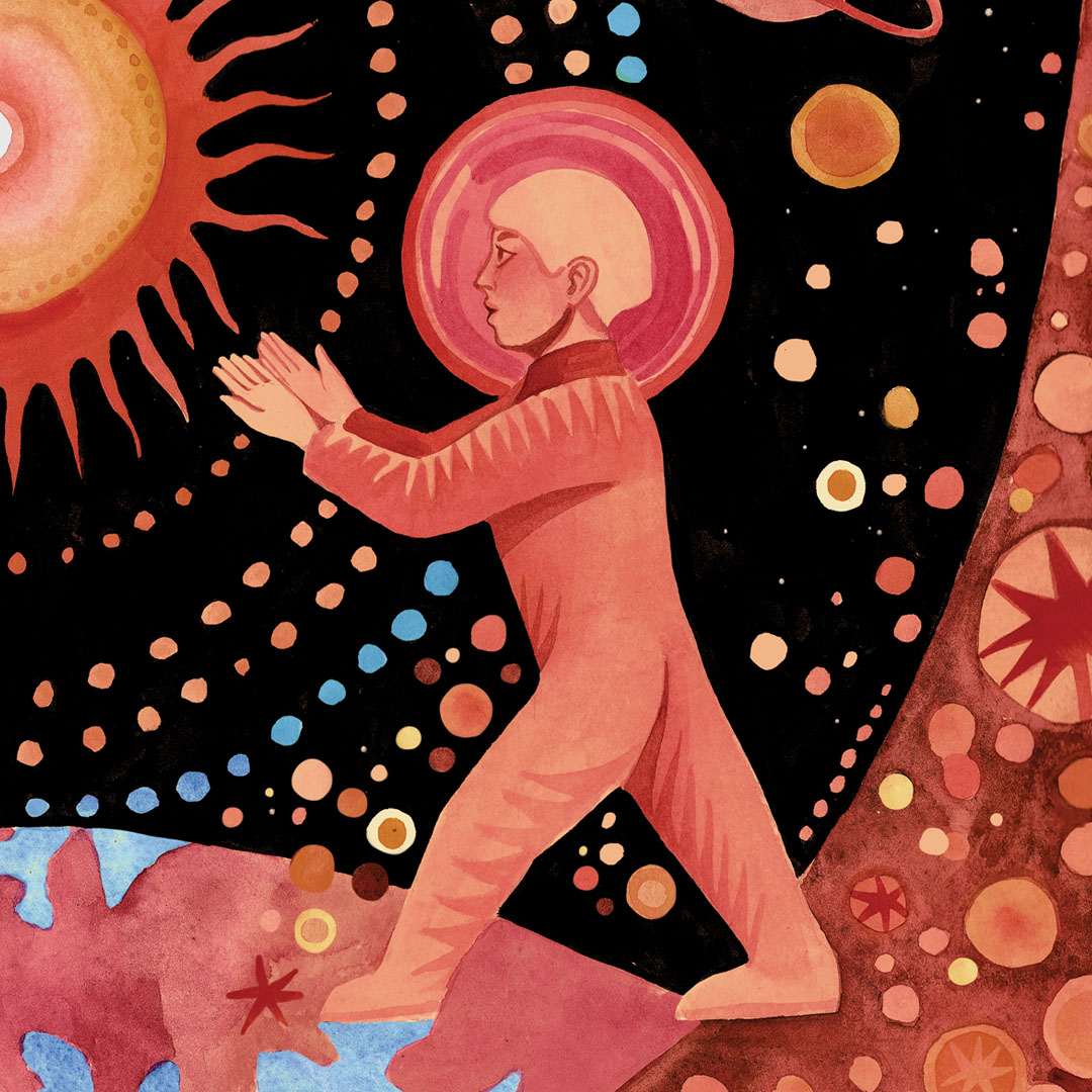 In my illustration, I wanted to show child-like excitement and curiosity. Beauty of colourful space.